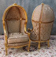Le fauteuil Carrosse de style baroque se distingue par sa puissance décorative. Héritier de l’art théâtral et grandiose du XVIIe siècle, il présente des formes pleines, des boiseries massives et des ornements sculptés d’une grande richesse. Les volutes, les rinceaux, les coquilles et les motifs floraux envahissent les accoudoirs, les pieds et les traverses. Le haut dossier, souvent capitonné, renforce l’impression de grandeur et offre un confort enveloppant. Les artisans qui reproduisent aujourd’hui ces fauteuils Carrosse baroques perpétuent une tradition séculaire : celle de la sculpture sur bois à la main, du tapissage traditionnel au crin, et de la dorure à la feuille. Chaque fauteuil devient alors une pièce unique, reflet du savoir-faire et de l’excellence artisanale.
